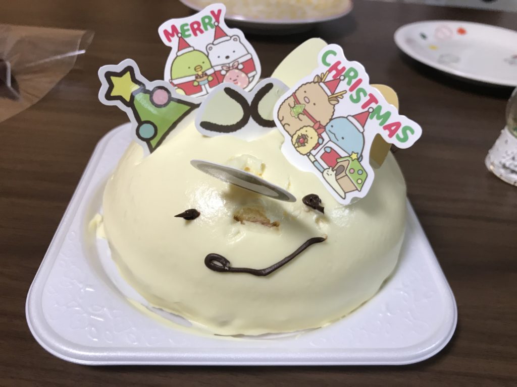 ケーキは、パパが買ってきてくれた大人のチョコケーキとすみっこぐらしの自分でデコレーションするケーキ!