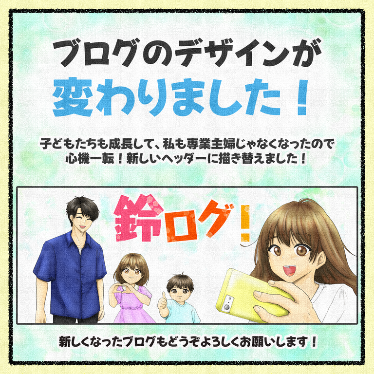 ブログデザインが変わりました! 2024年04月22日 07:00 本ページはアフィリエイトプログラムによる収益を得ています ぴぴが小学生になったのを機に、ブログのヘッダーを描き替えました!こう見ると、あくまで個人レベルでですが絵が上達したなあ~と感じてみたり。新しくなった鈴ログ!もよろしくお願いいたします★ 育児絵日記ランキング 「ブログ&お知らせ」カテゴリの最新記事 タグ :#ブログ < 前の記事次の記事 > コメント コメントフォーム 名前 コメント 記事の評価 リセット リセット 顔 星 情報を記憶 コメントを投稿する