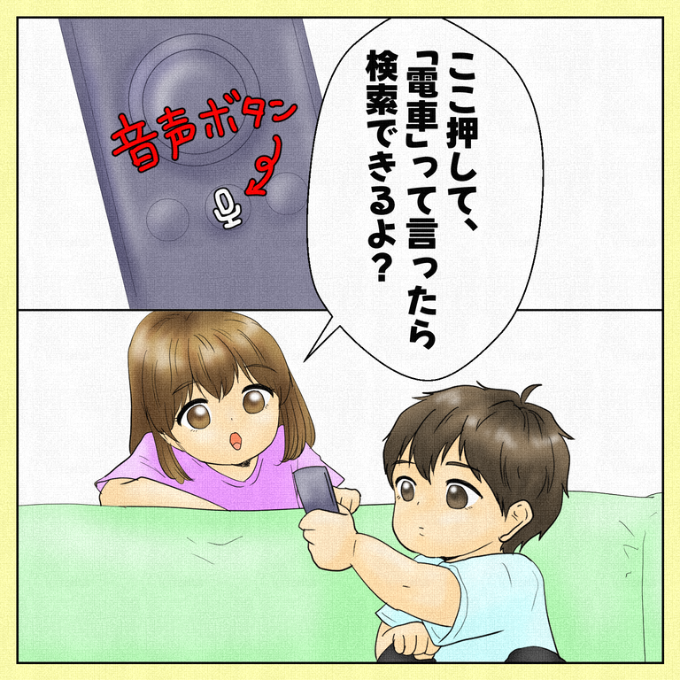 文字を打って動画が検索できないちぃにぴぴが音声検索を教えてあげてた。