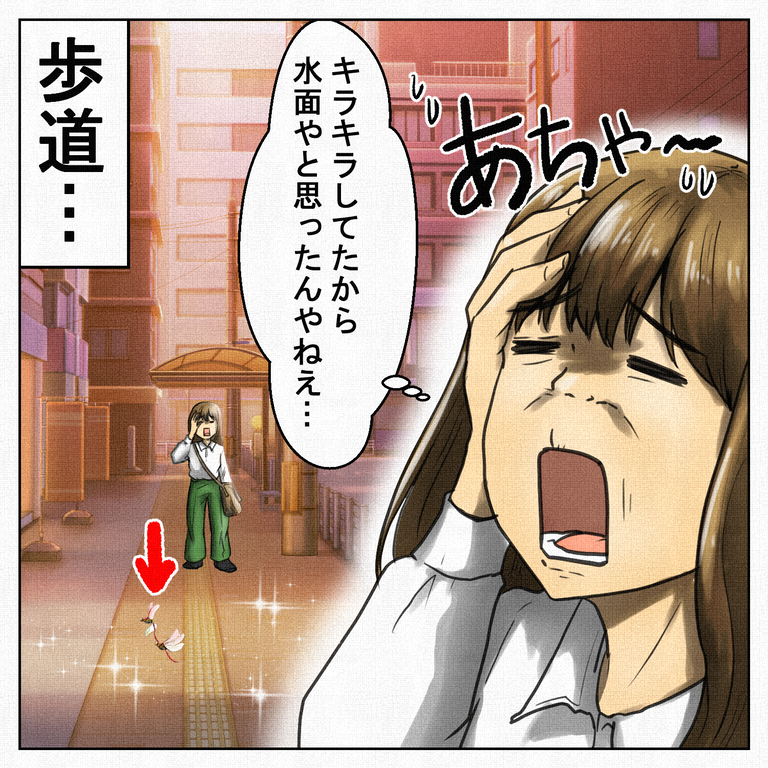 あちゃーってなった秋の始まり 2025年09月26日 06:00 本ページはアフィリエイトプログラムによる収益を得ています 歩道の材質が、日が当たるとキラキラするタイプ。赤とんぼが水面と勘違いしがち。畑のマルチシート(黒いシート)や車も日が当たるとキラキラするから勘違いしがち。可愛いかわいそう…育児絵日記ランキング 「いずの家の日常漫画」カテゴリの最新記事 タグ :#すずみ < 前の記事次の記事 > コメント コメントフォーム 名前 コメント 記事の評価 リセット リセット 顔 星 情報を記憶 コメントを投稿する